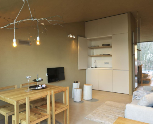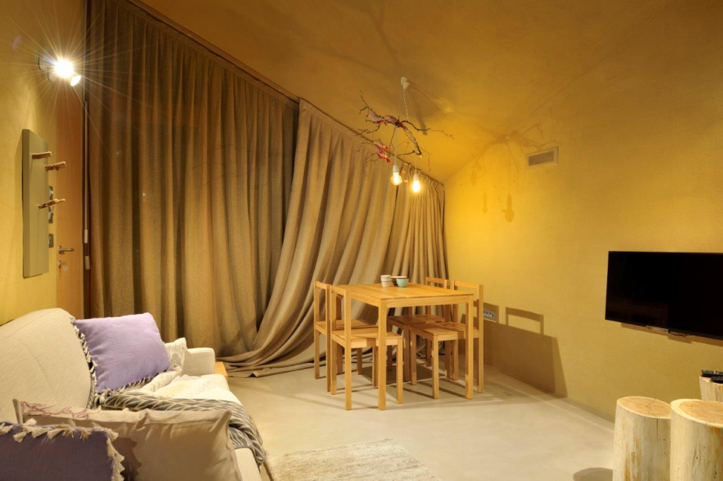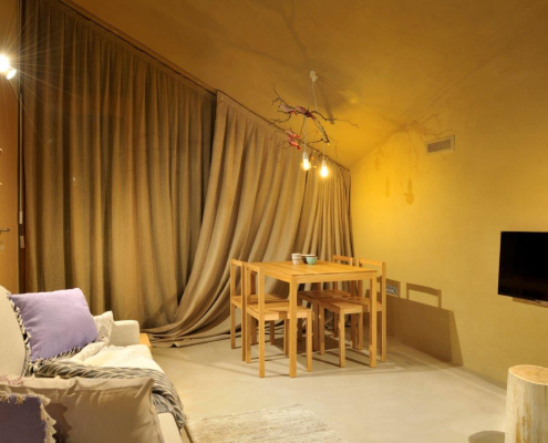 ProjektEko posest Ortenia s šestimi studio apartmaji ter vrsto skupnih prostorov.Izvedba ilovnatih ometov