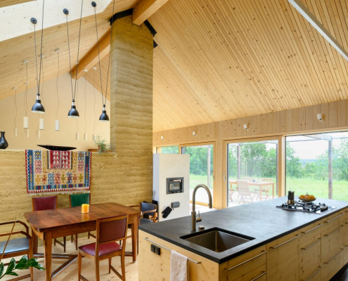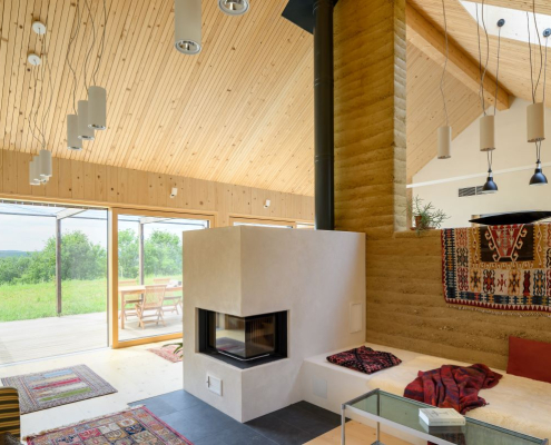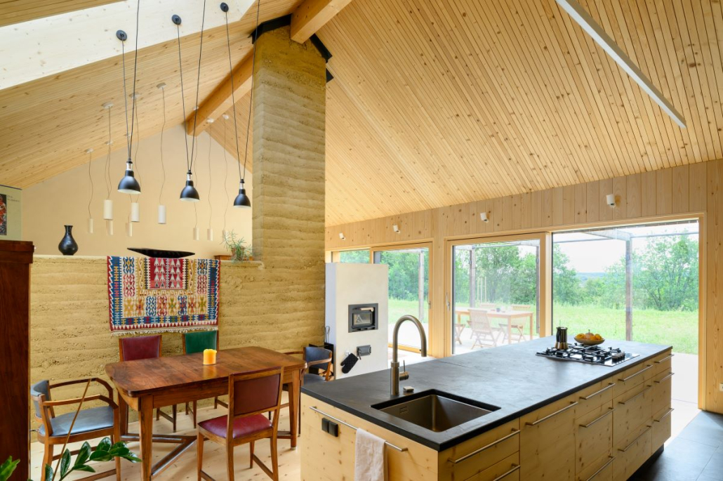 Ilovnati ometi, stena iz zbite ilovice in ilovnate barve : Gnezdo d.o.o.Arhitektura