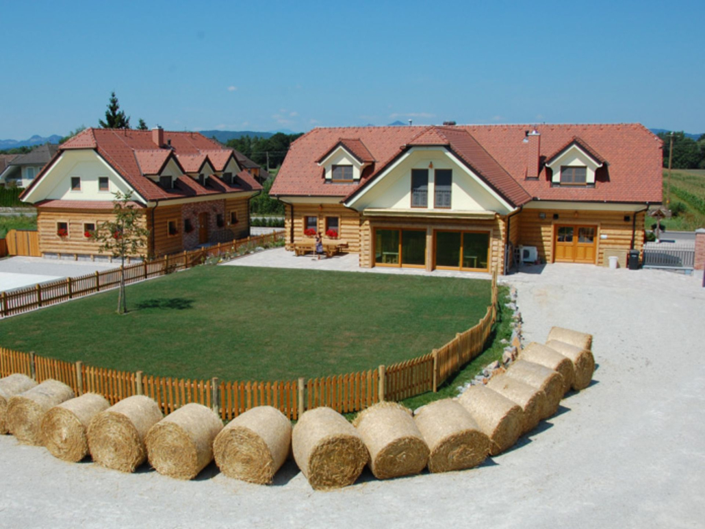 Objekti so v celoti zgrajeni po načelih ekološke trajnostne lesene gradnje in z gradivi iz naravnega tokokroga.